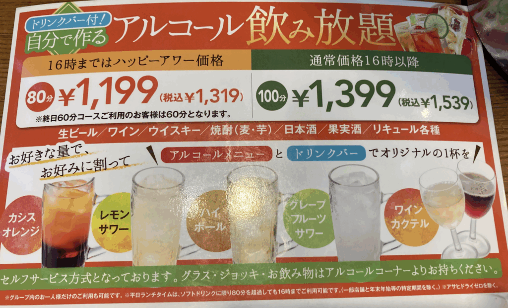 アルコール飲み放題(2名分で 2,638円)を付け、乾杯の1杯目はビールでリフレッシュ。以降は各自ペースで軽く数杯。脂と辛味の往復になる鍋につき、強い酒を重ねず、喉の洗い流しを優先する運用がよろしいかと存じます。