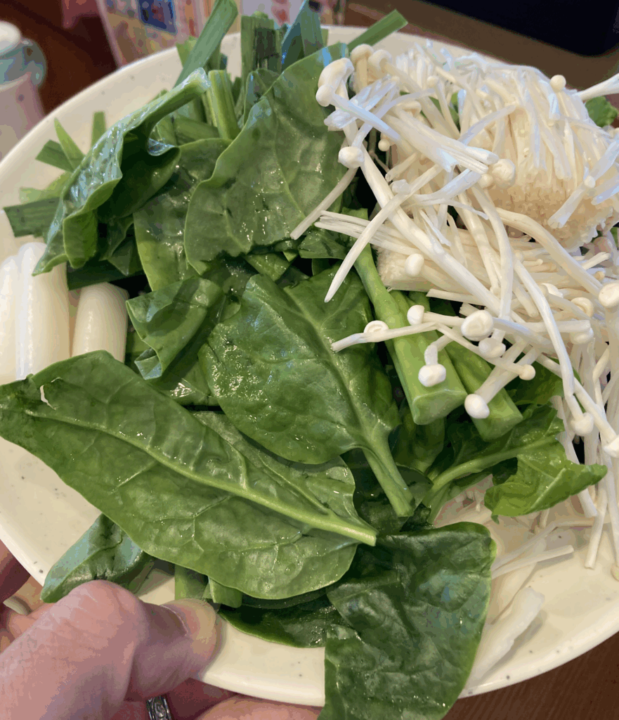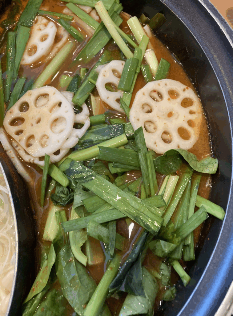 運用のコツ:野菜を先に多めに入れて、甘みをだしに溶かし込むと、参鶏湯はより丸く、赤味噌は辛味が角立たずまとまります。今回は“鍋に投入済みの野菜写真”が多めですが、それもこのアプローチゆえでございます。