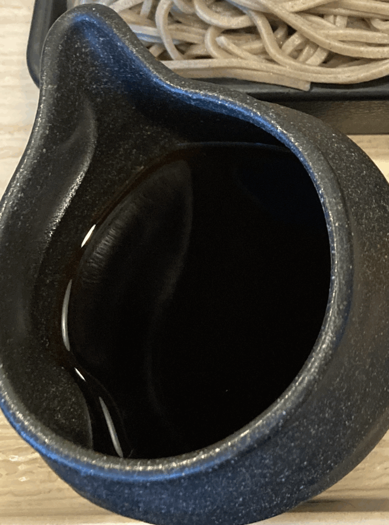 上の写真は、まさに「これからそばにぶっかけよう」とする直前のもの。器を傾けると、つけ汁の中で浮かぶ脂の粒がゆらりと揺れ、その奥から香辛料の立ち上がる香りが鼻を刺激します。