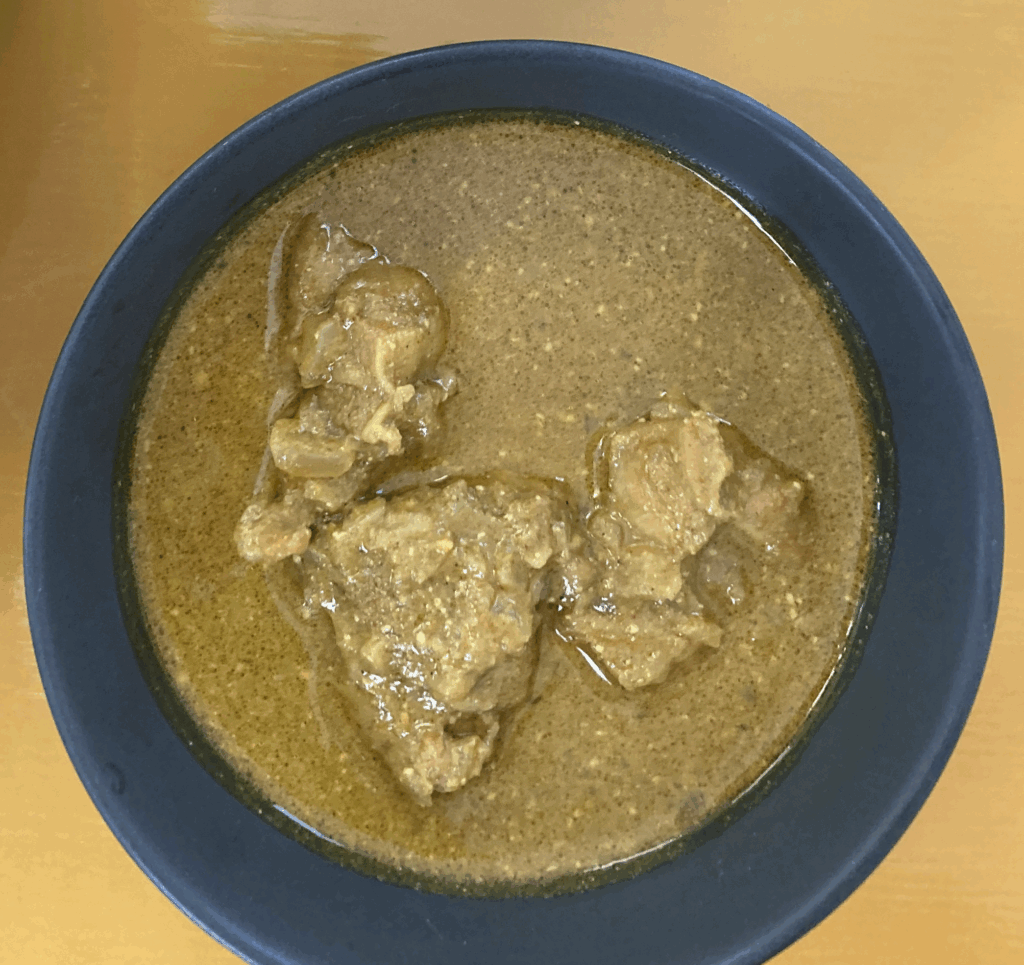 - チキン系カレー:チキンのほぐれた繊維が見える煮込みで、スパイスは強すぎず香りが中心。ココナッツミルク的な丸みが少しあるため、辛さよりも香りの層で満足させるタイプです。
