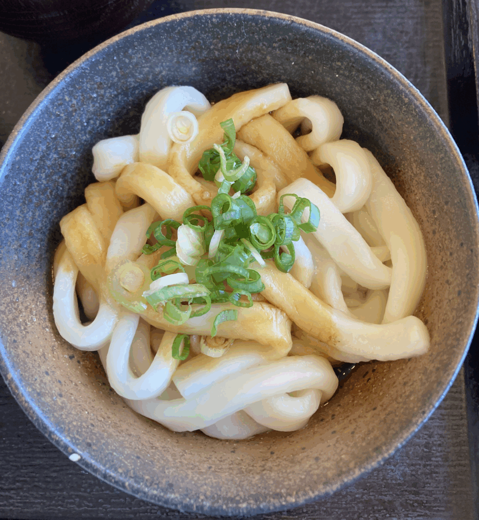 - タレ:甘口の濃い醤油ダレが麺にしっかり絡み、うどんそのものの小麦香を引き立てつつ、全体をまとめる役割を果たしています。