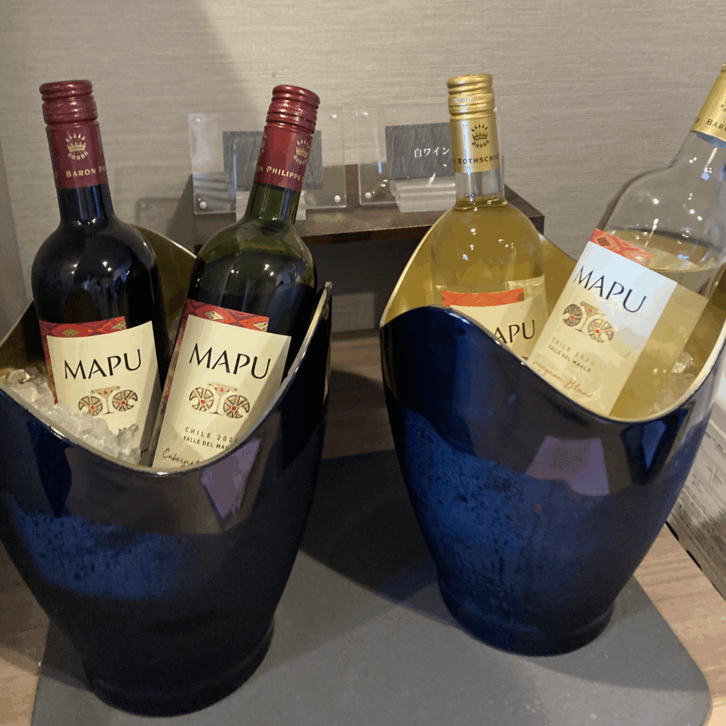 ラウンジの飲み放題はセルフ方式なので、気軽に何度も席を立てるのがよい点です。