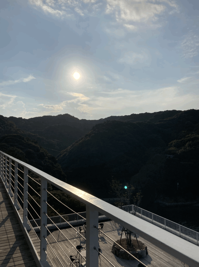夕暮れ時には、足湯の湯面に空の色が反射し、淡くオレンジがかった海景色に溶け込むよう。写真は撮れていませんが、昼・夕・夜の足湯風景もぜひ並べて見せたいと思う要素です。