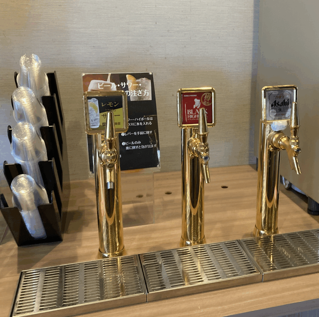 ラウンジの飲み放題はバラエティがあり、今回はビールとハイボールをメインに楽しみました。