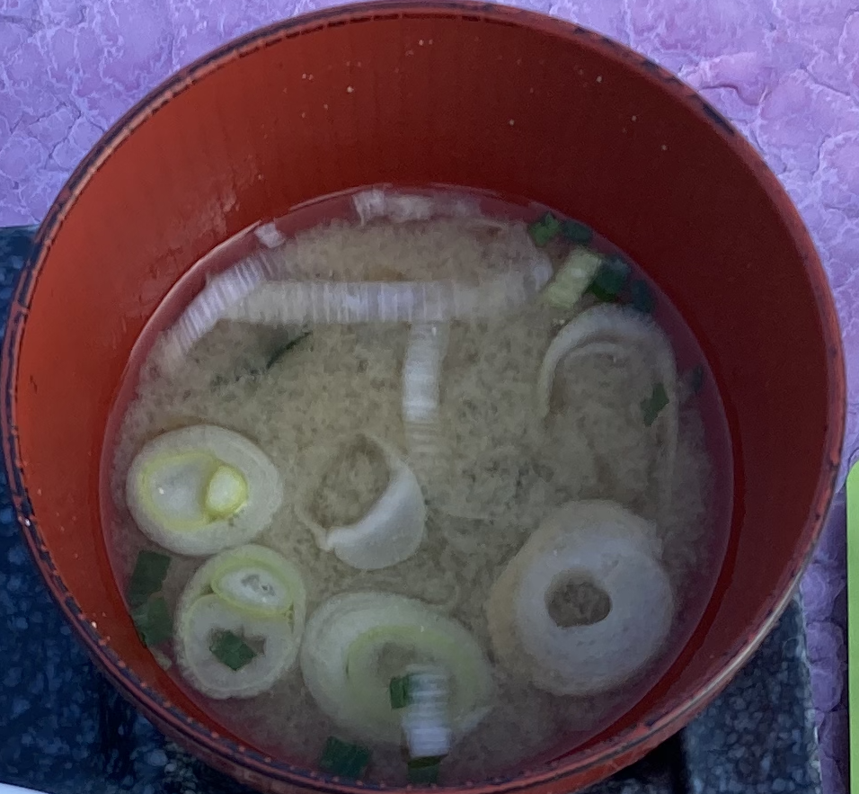 海老(出汁)の味噌汁。海の香りが朝を満たす。