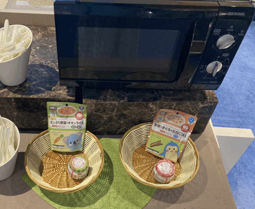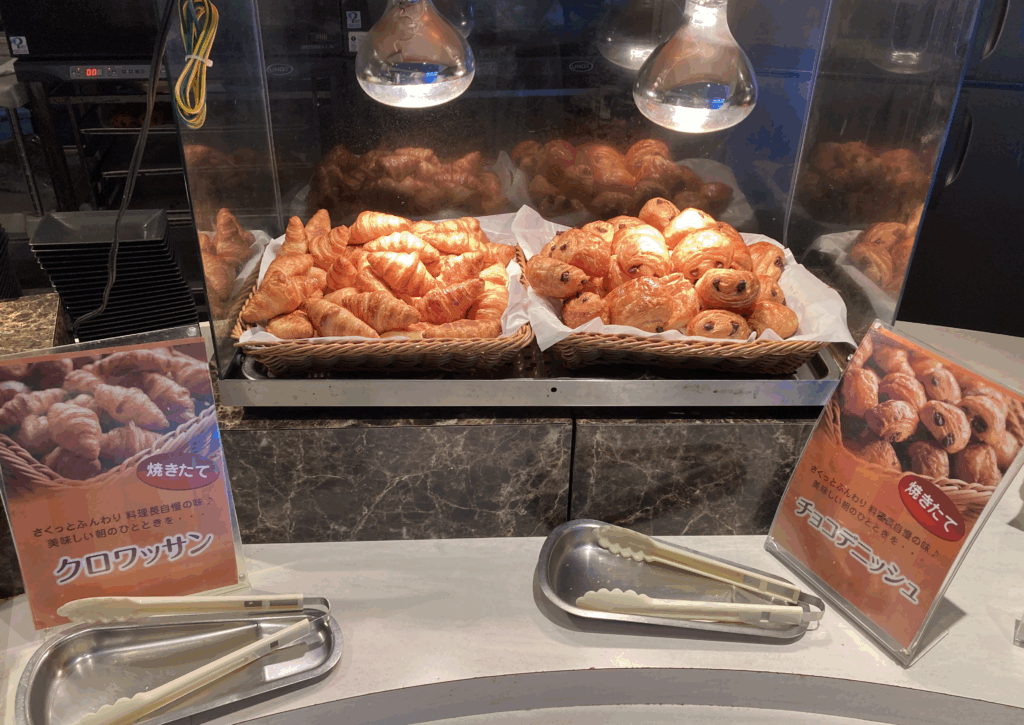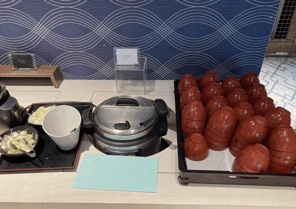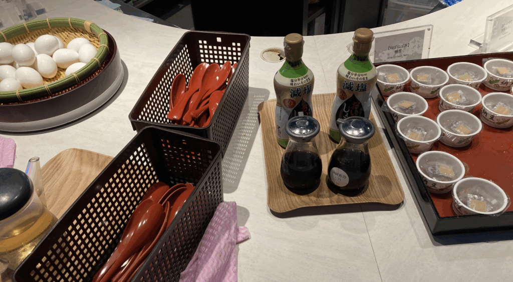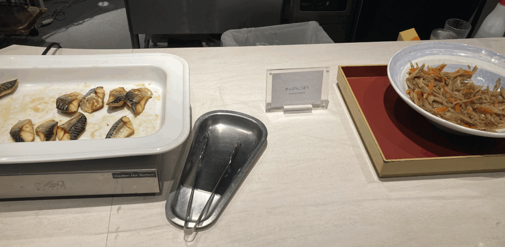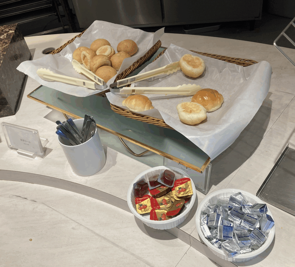 - デザートコーナー(季節のゼリー、ケーキ類)・アイス(ハーゲンダッツ等が並ぶことも)。