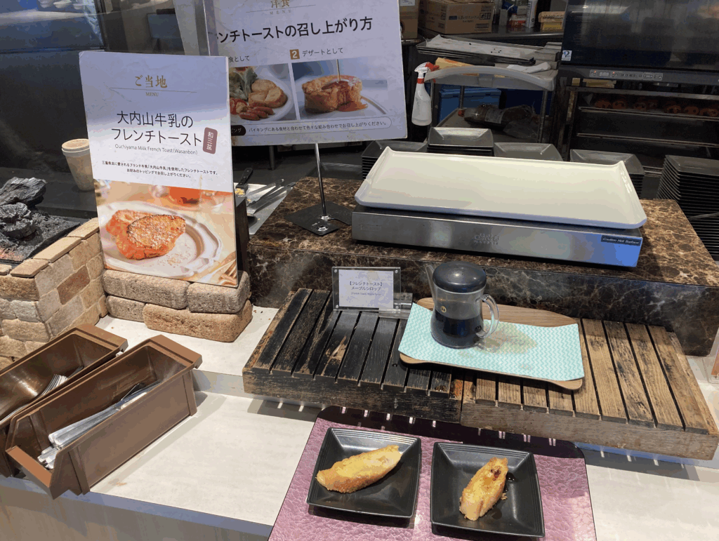- フレンチトースト(地元・大内山牛乳を使った焼きたて)。