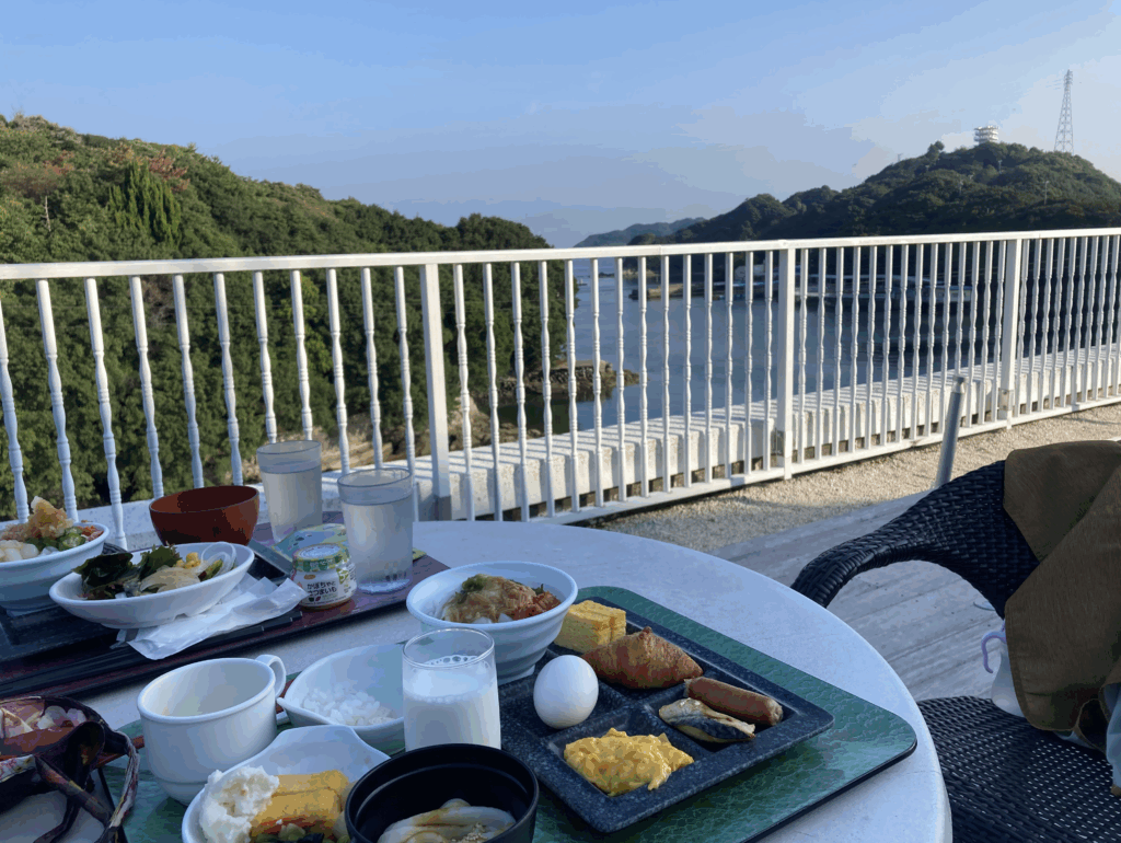 海風が直接届き、潮の香りを鼻先に受けながらの朝食は、館内で食べるのとはまったく違った心地よさがありました。まさにこの時間帯。