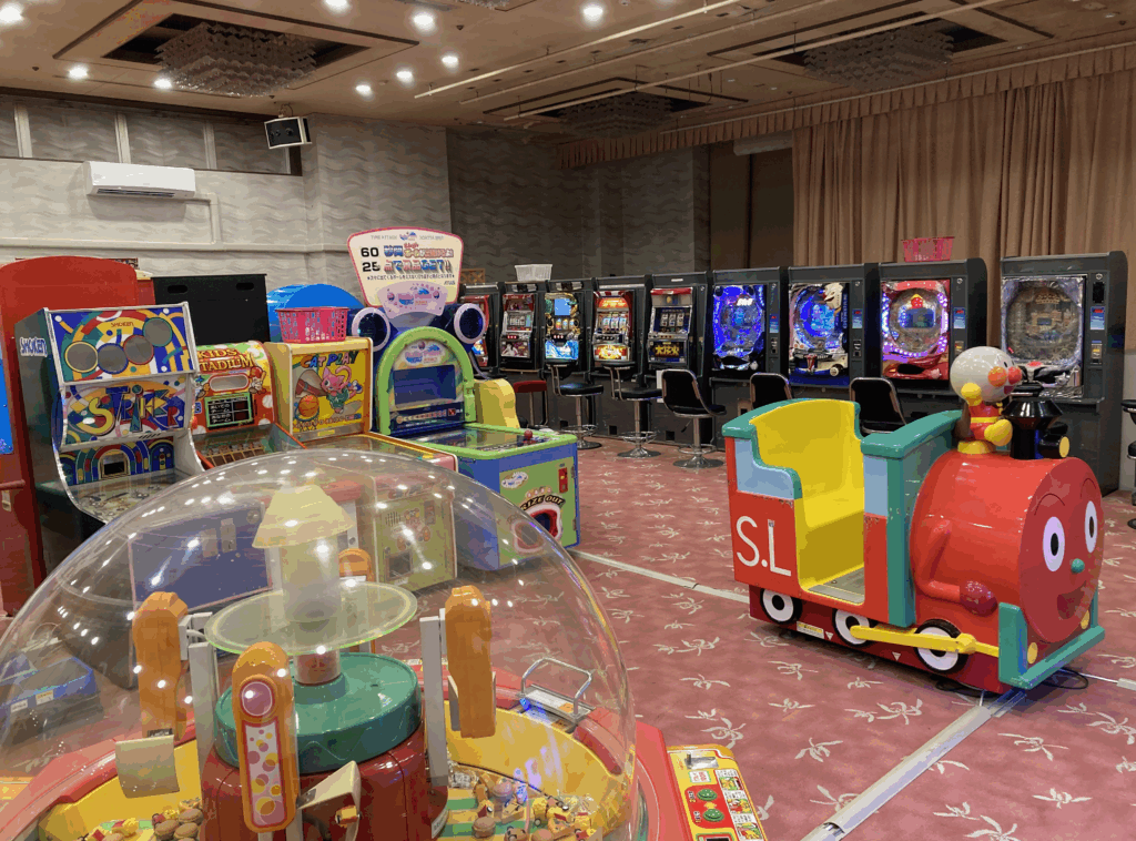 ゲームコーナーはレトロなラインナップも含めて、子どもや若い世代が楽しめる構成になっています。