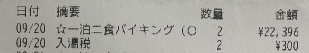 - 延泊分(9月21日分)は私費扱い。