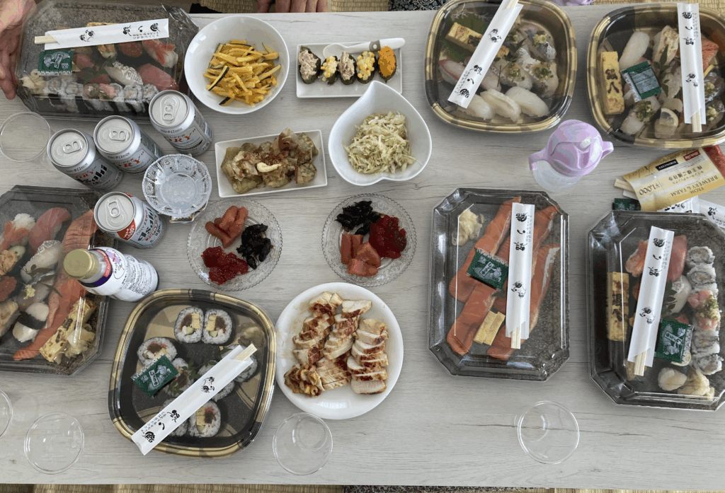寿司は出前でも十分に“イベント性”を担い、テーブルに置かれた折を開く瞬間から会話が弾むのが良いところです。