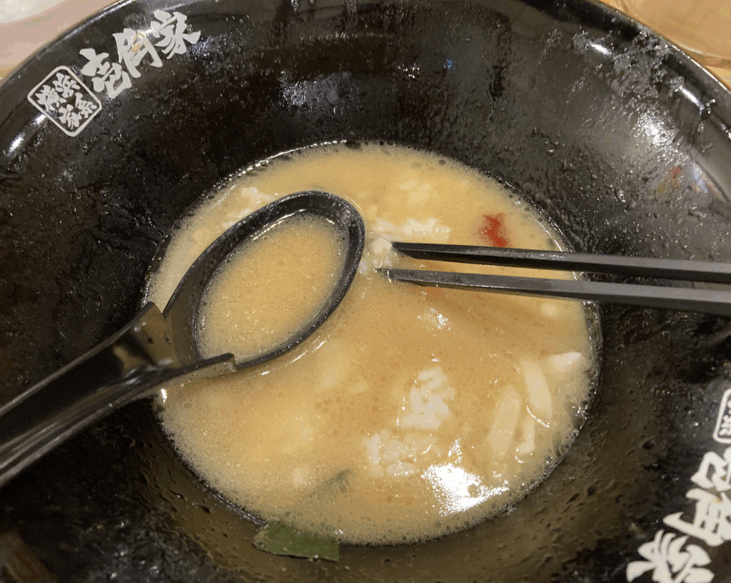 麺を食べ終えたら、残りスープで雑炊(ライスおかわり)