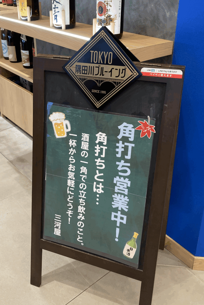 三河屋にて短い角打ちでの一杯。立ち飲みの気軽さ。加賀鳶の生の“フレッシュな甘み”。