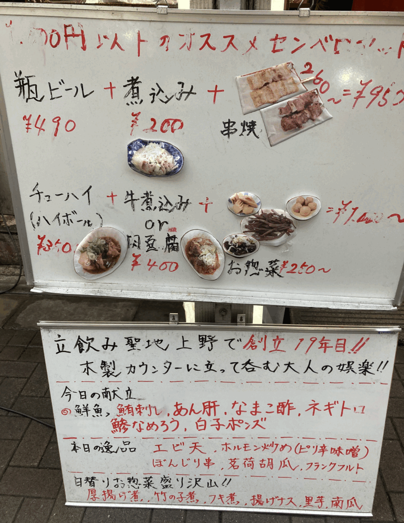 上野の立ち飲み事情として「はしご酒文化」「短時間での濃い交流」が根付いている様子が伺えます。