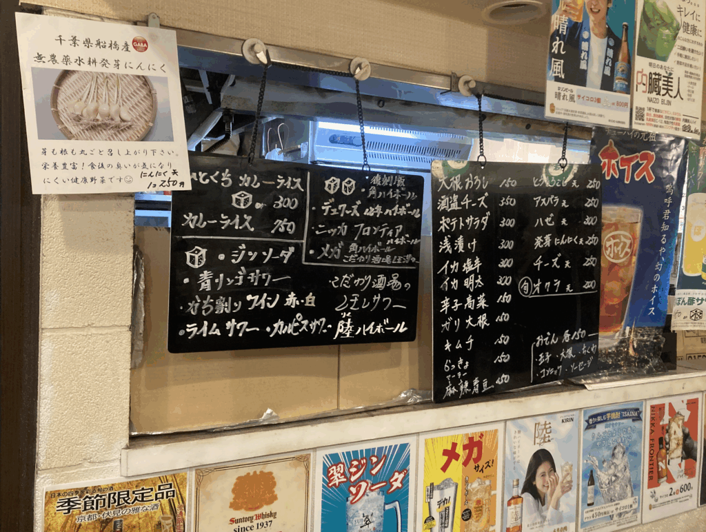 店内は立ち飲み主体で、混雑している時間帯は入れ替わりが早く、それでも立ち飲みの気楽さがあって居心地は悪くありません。レビューや地域メディアでも“上野のせんべろ名店”として取り上げられているため、初めての方も入りやすいかと思います。