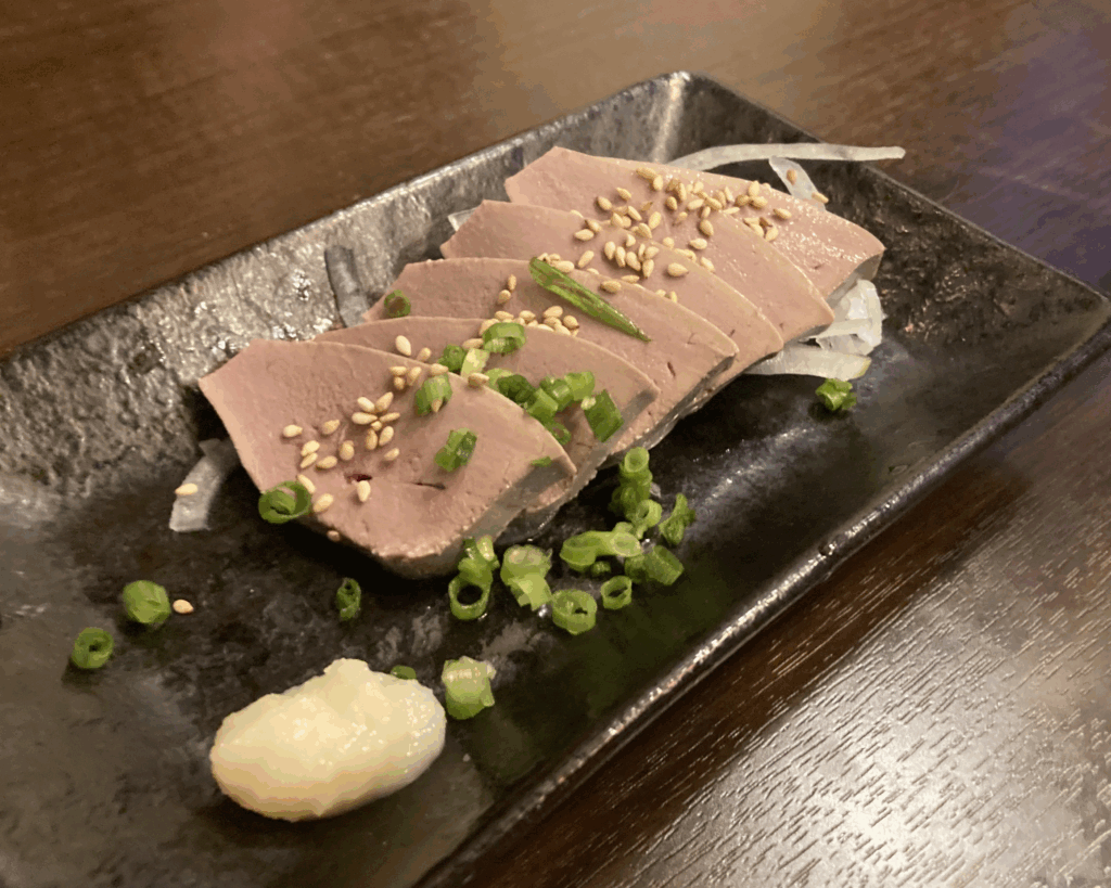 新鮮さが第一に伝わる一品。口に含むと滑らかでクリーミー、わずかに甘さを感じ、鉄分のニュアンスがふんわりと後から追いかけてきます。下処理がきちんと施されているため、独特の雑味や臭みはなく、薬味(刻み葱・にんにく・ごま)との相性も良好。ビールと合わせると、レバーのコクがビールの苦みでうまく切り替わり、食べ飽きません。