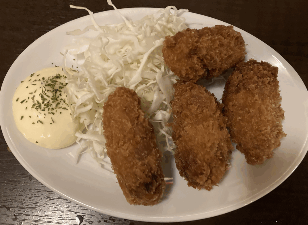 - カキフライ:衣薄め、牡蠣のジューシーさを保った良い火入れ。
