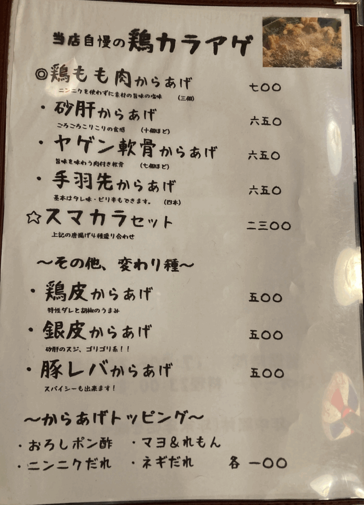- 次回は通常営業時にじっくりと色々試したい(唐揚げの部位違い、季節メニュー、ビールのラインナップチェックなど)。