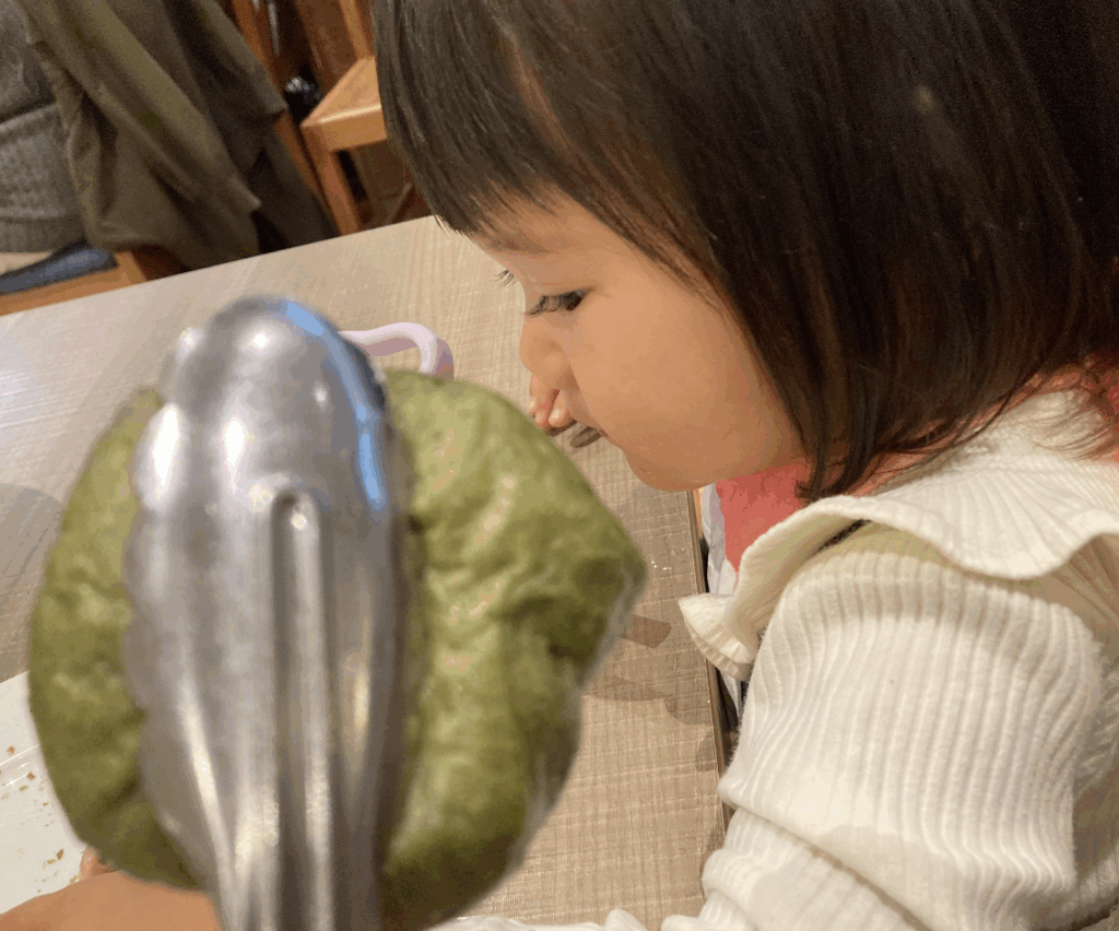 - パン食べ放題が一部メニューに含まれており、3歳以下は無料。今回娘はよもぎロールを喜んで食べ、親の食事の合間に助かりました。