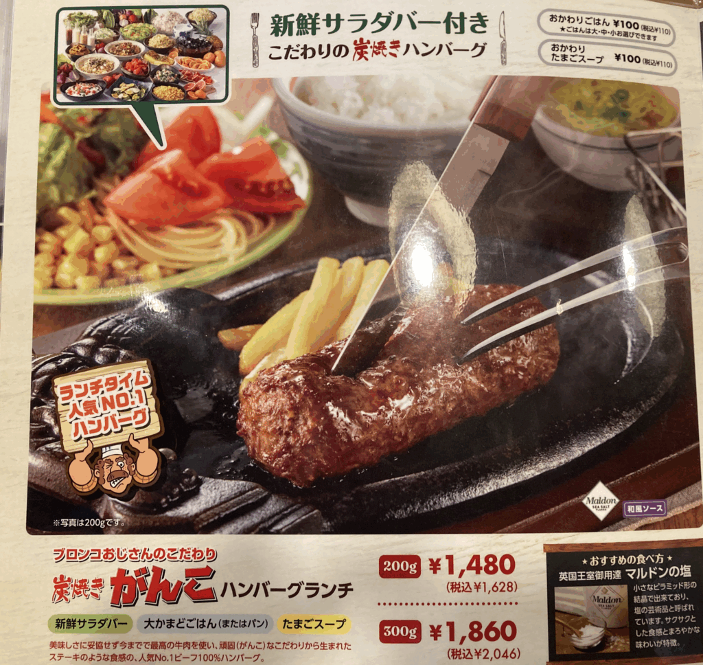 - 炭焼きがんこハンバーグランチセット(200g)×2(サラダバー付き) — 1,628円 ×2