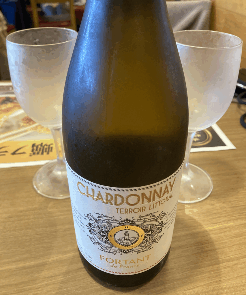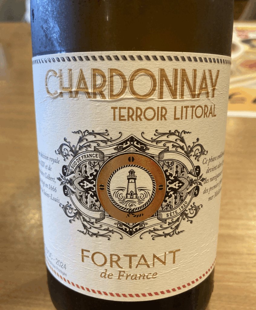 今回注文した白ワインはラベルに “FORTANT CHARDONNAY TERROIR LITTORAL” とある1本。