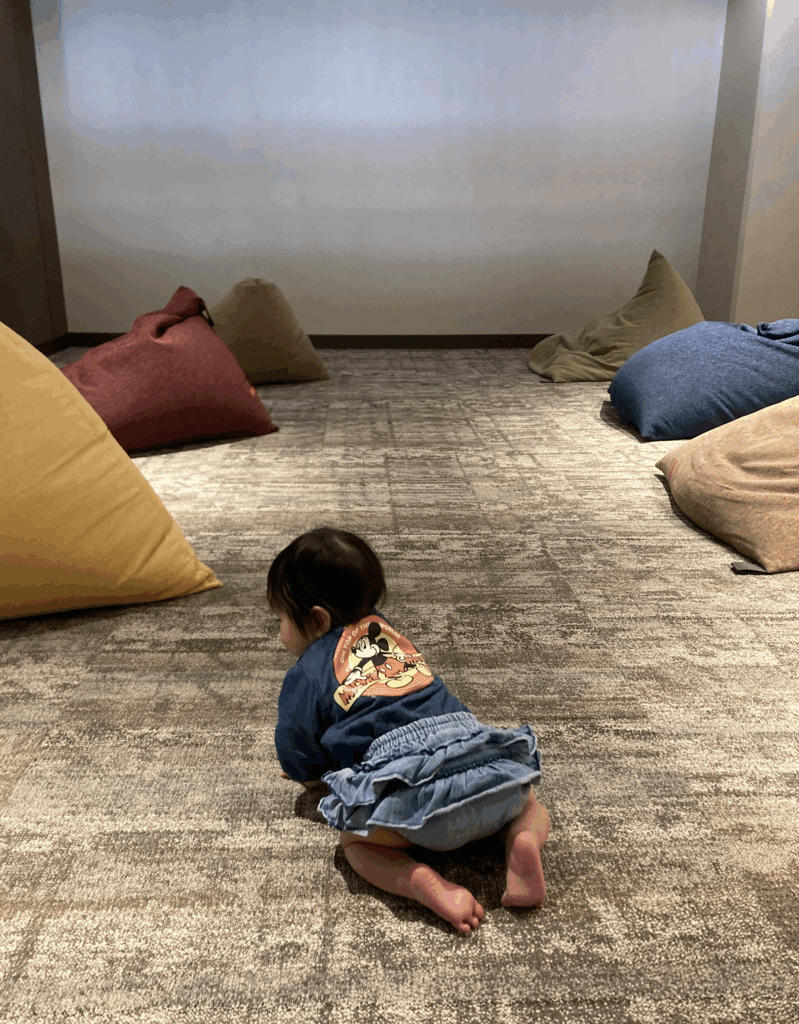 ラウンジその1—クッションたくさん、子連れでもゆったりできる場