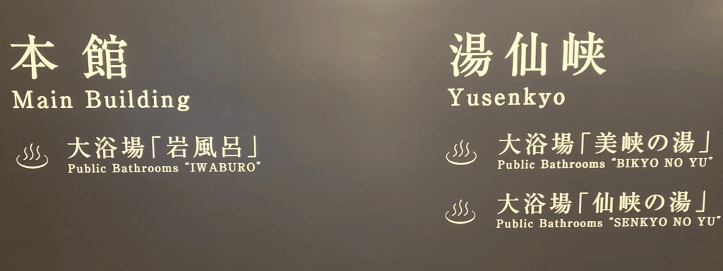本館の大浴場に加え、箒川を渡った湯仙峡エリアにも別の浴場が整備されていて、いくつかの浴場を巡ることで湯の表情を変えて楽しめます。