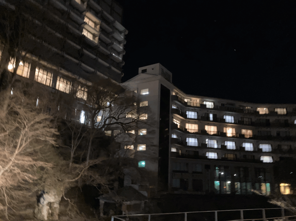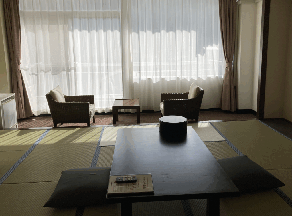 夜は滝見ラウンジの静けさを最後に選び、部屋に戻って少しだけ火照った体を休めました。