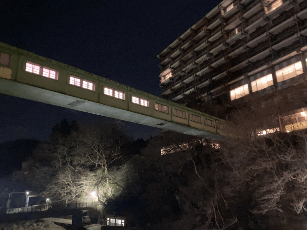 ラウンジ間の移動や湯仙峡へ渡る小さな散歩のような導線は、滞在を飽きさせない工夫でした。