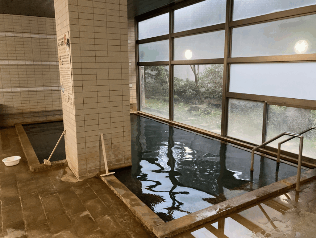 ここは黒っぽく濁った湯が特徴で、肌触りがしっとりと残るタイプ。湯に浸かった瞬間、皮膚の表面がふっと柔らかくなるような感覚があり、湯上がりのしっとり感が長く続きます。