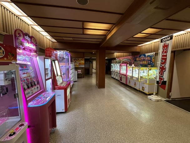 館内にはカラオケやゲームコーナー、売店などの設備も整っています(宿の施設案内参照)。