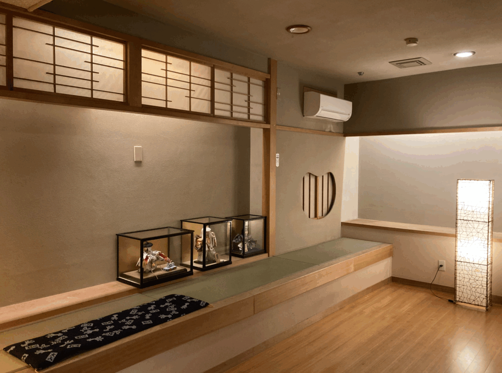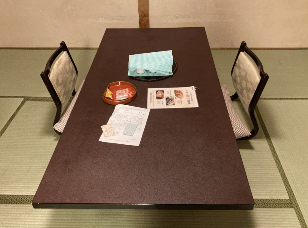 館内は静かで、クリスマスらしいものはありませんでしたが、和風の小さな飾りや窓の外の街灯が柔らかな夜を作っていて、その静かな祝祭感がまた格別でした。