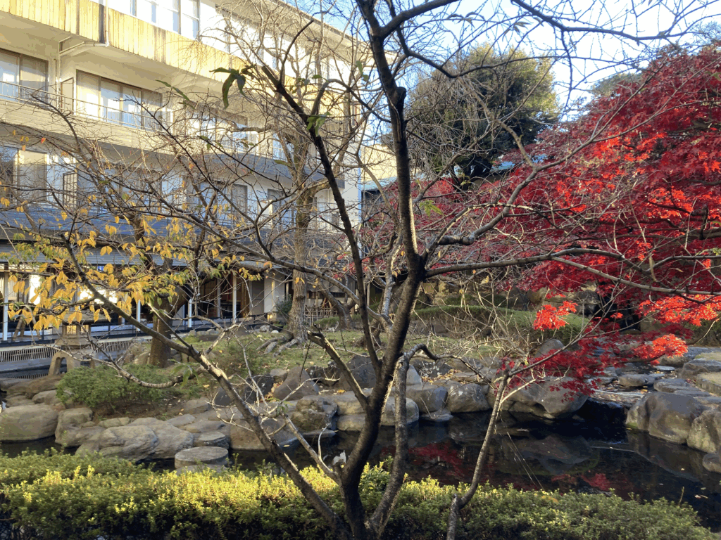 私が訪れたときは秋の趣で、庭の造形や石組みがより濃密に見え、庭の静けさが館内の空気をさらに落ち着かせていました。伊東園の案内でも庭園の四季の表情が強調されています。