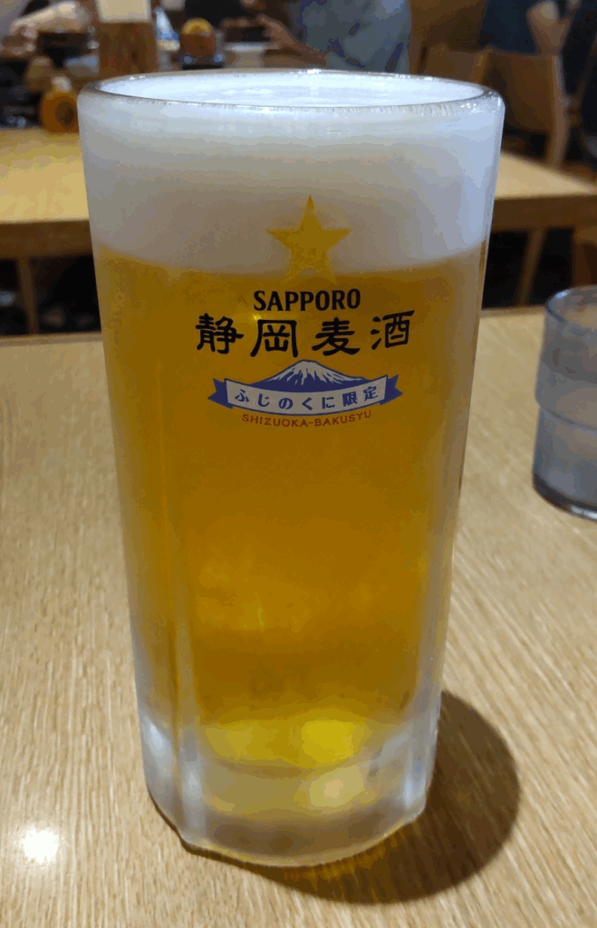 注文は、サッポロのご当地ビール・静岡麦酒。