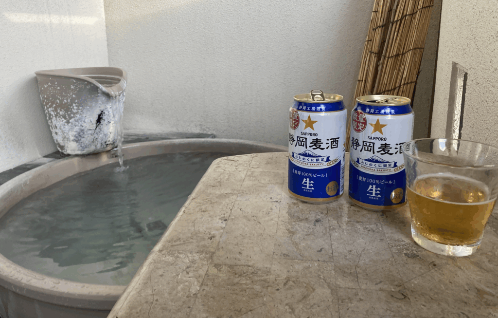 ビールを一口、また湯に浸かり、また海を眺める。こうした反復が、贅沢を日常に変えてくれる。