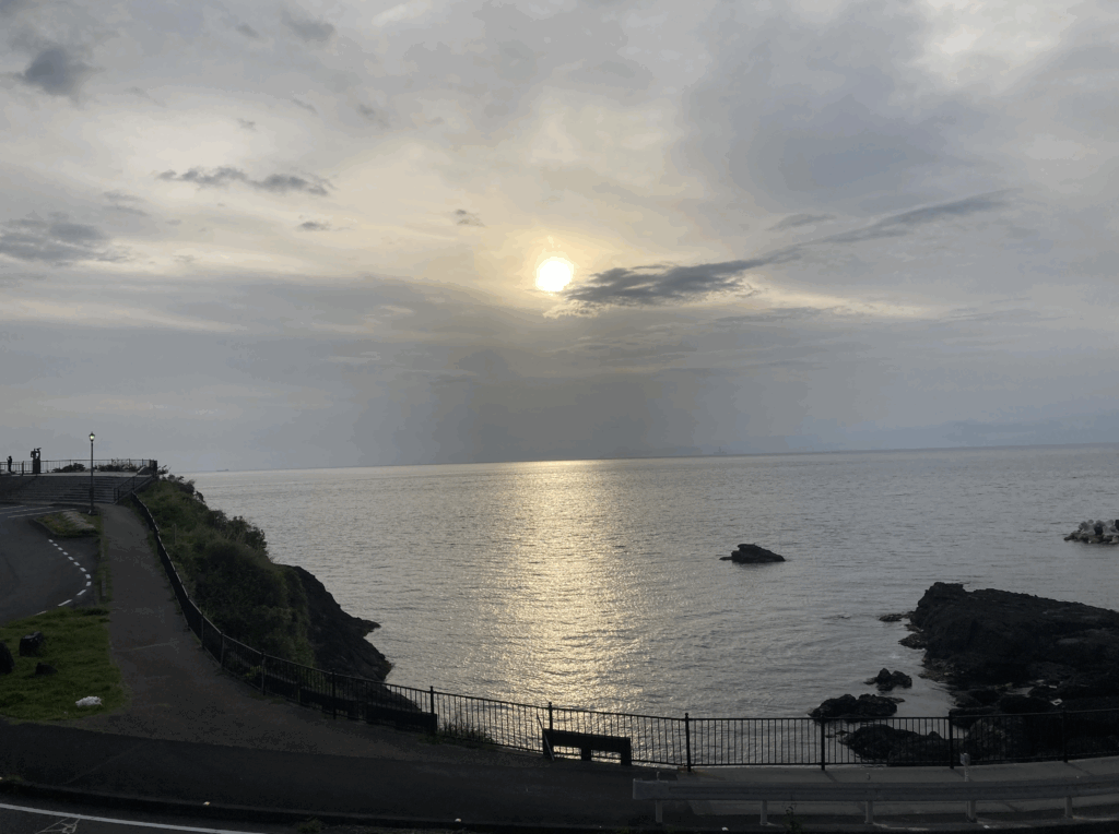 宿に着いて車を停めたとき、潮の匂いと海風が顔を撫でる。