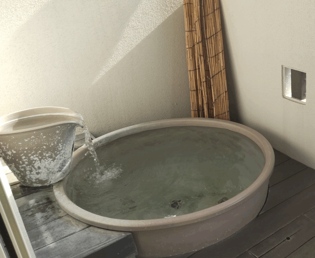 朝食後、もう一度ベランダに設えられた露天風呂に。