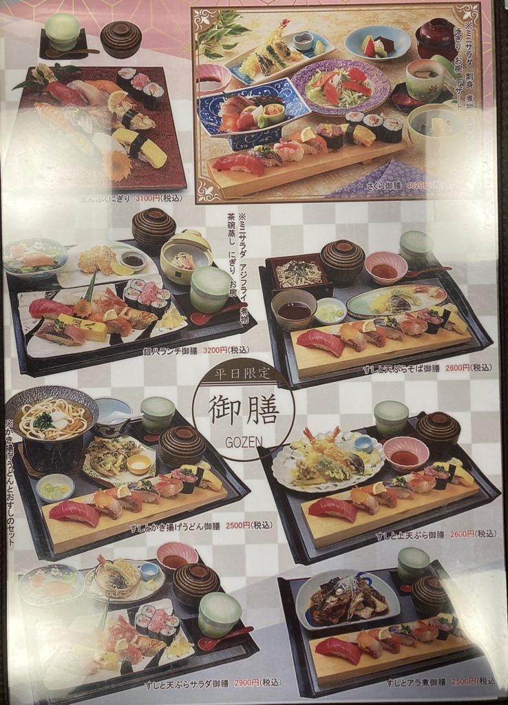 家族で銀八鮨のランチへ伺いました。参加者は私、妻、娘、それに私の両親と義父の合計6名。