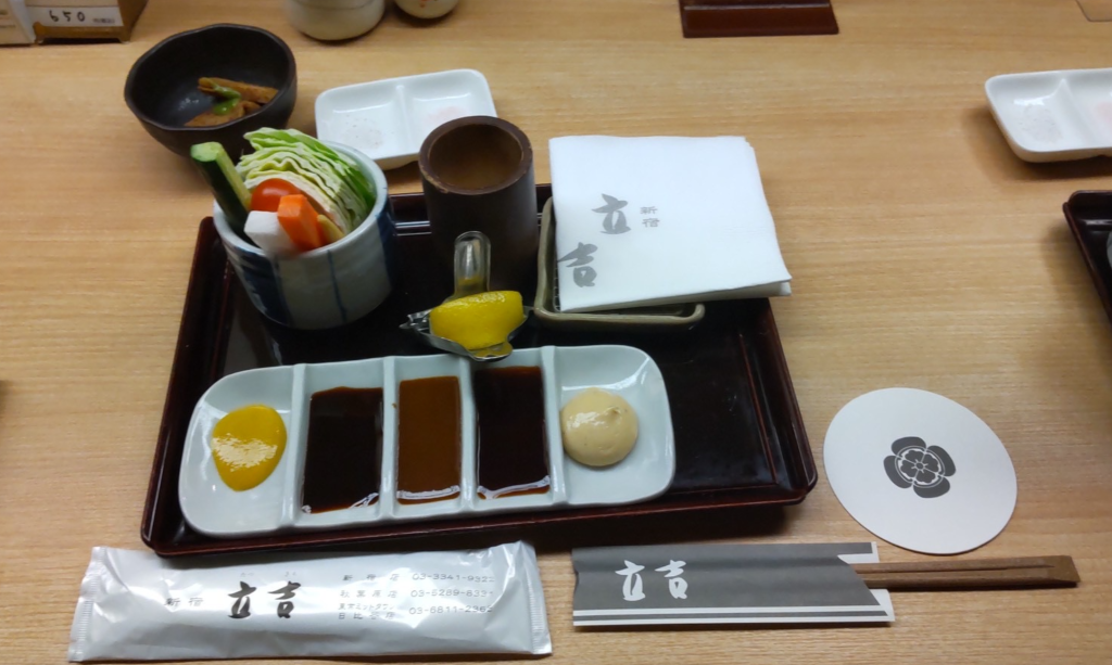 突き出し野菜スティックとタレのセット。