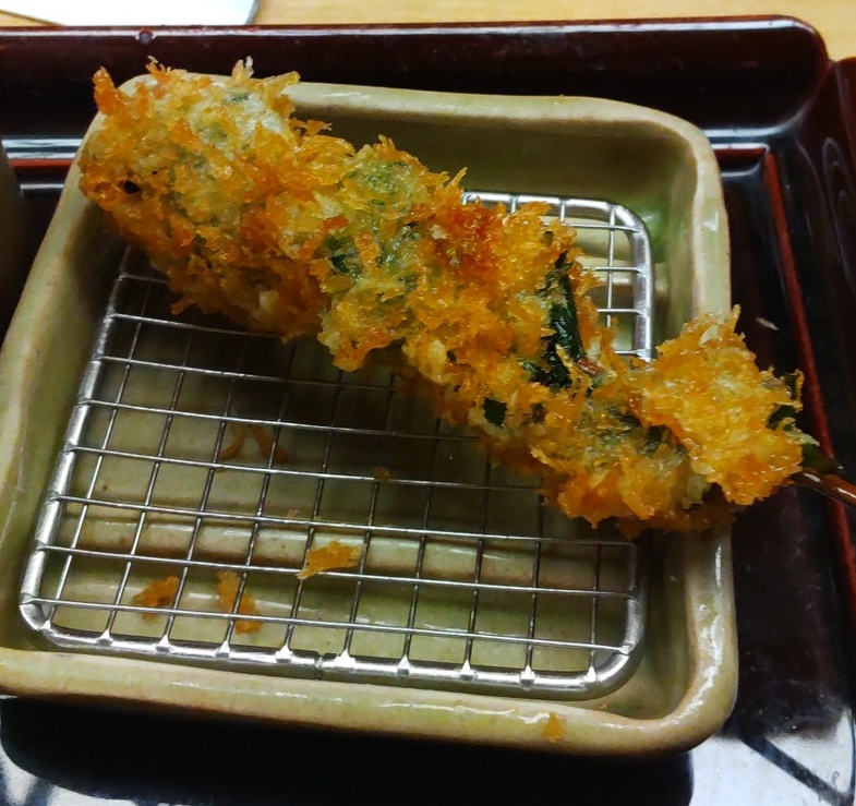 軽やかな衣の食感が口の中で踊るような一串。