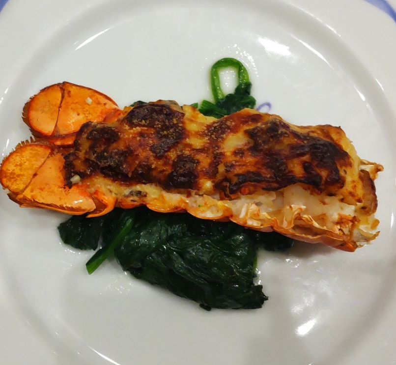 - メイン:私=オマール海老のラ・ミドール、妻=仔羊のロースト