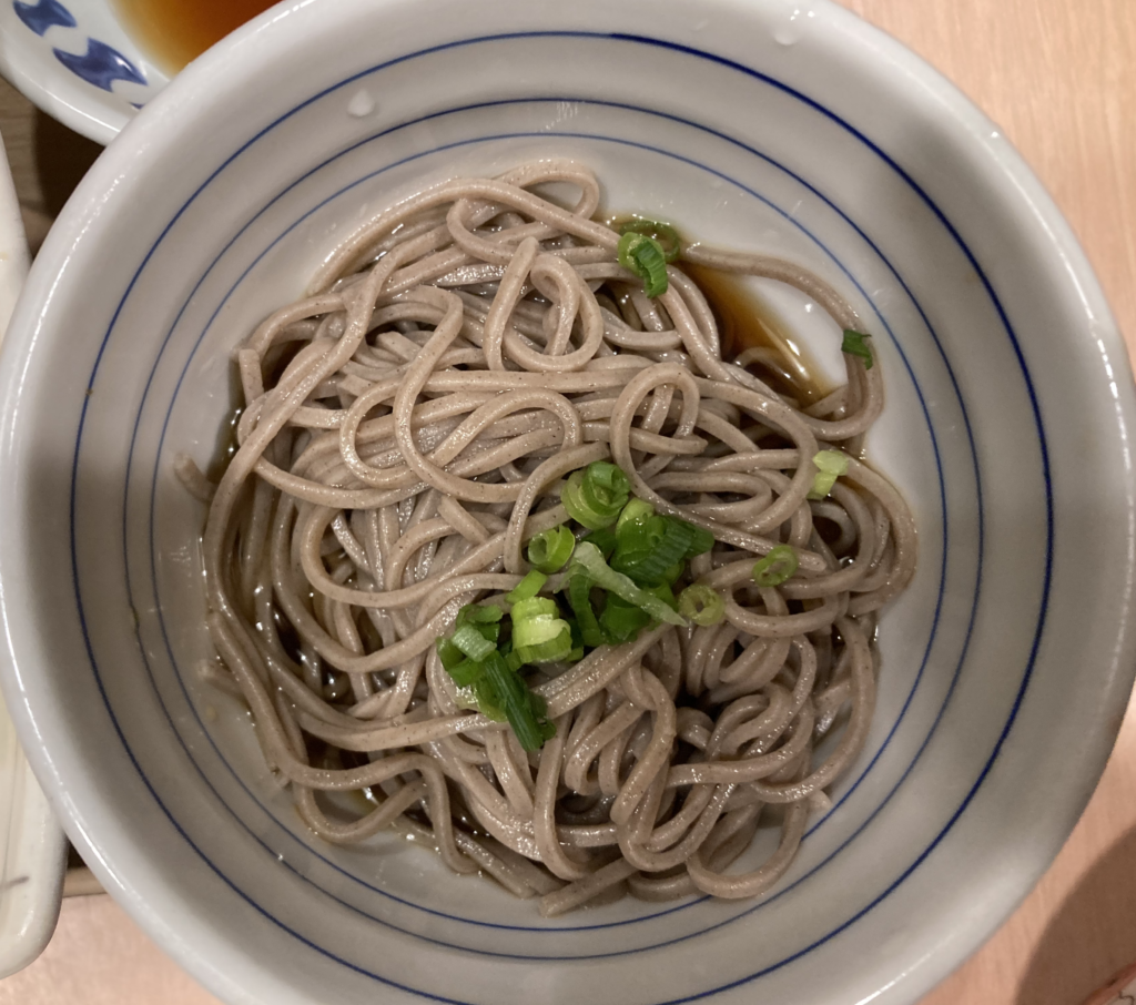 冷たい蕎麦を小鉢に選んだことは、食事のリズムを整える上で正解。