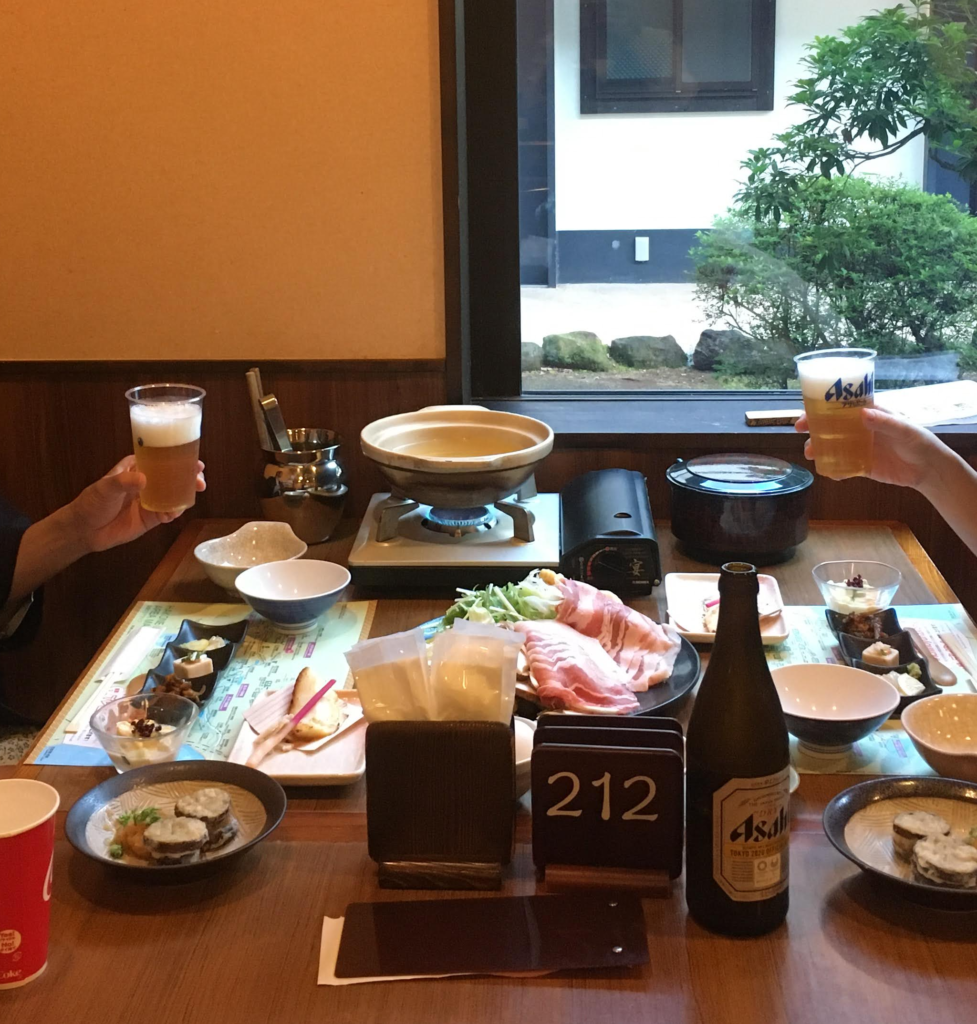 夕食は宿内のレストラン「品の木」。グループごとに仕切られたスペースで、安心して食事ができる配慮が嬉しかったです。