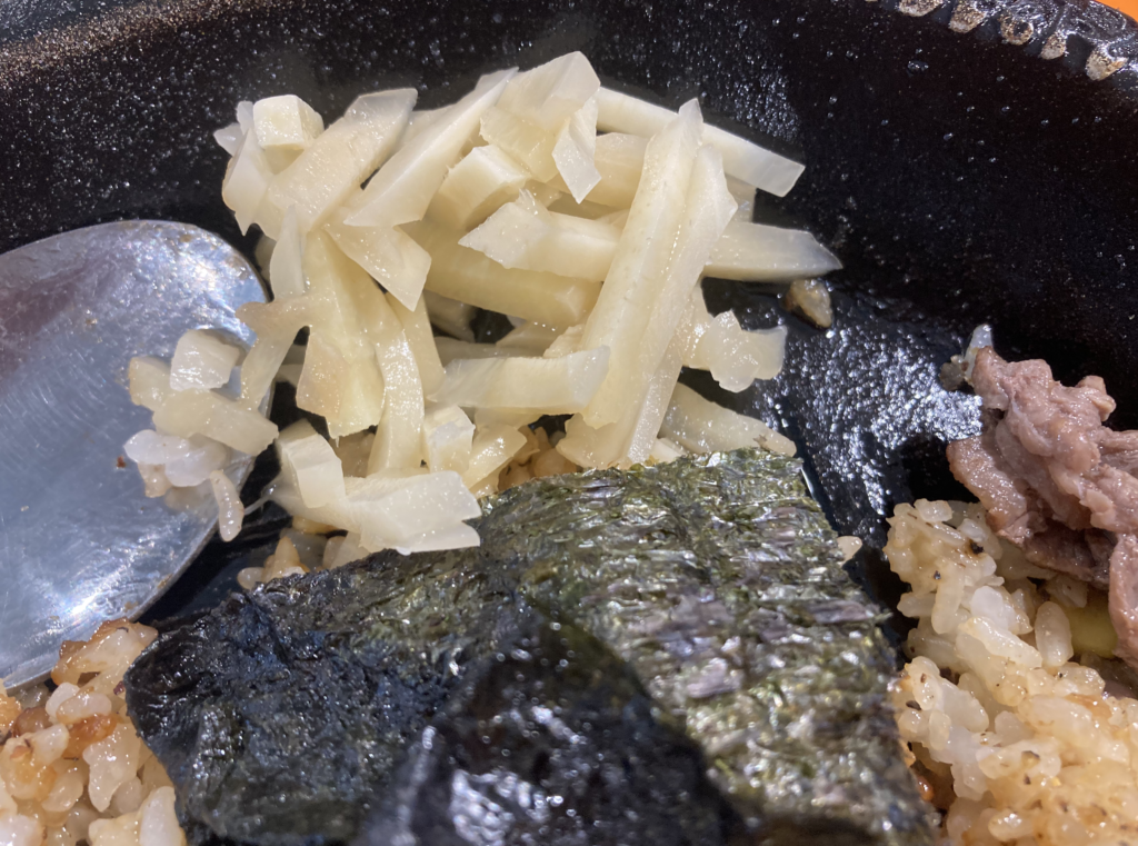 - ラーメン付属のショウガ・のりをペッパーライスに転用