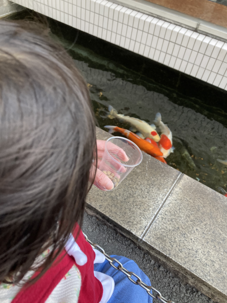 ここで、従業員の方のご厚意により、エサあげ体験をさせていただきました。