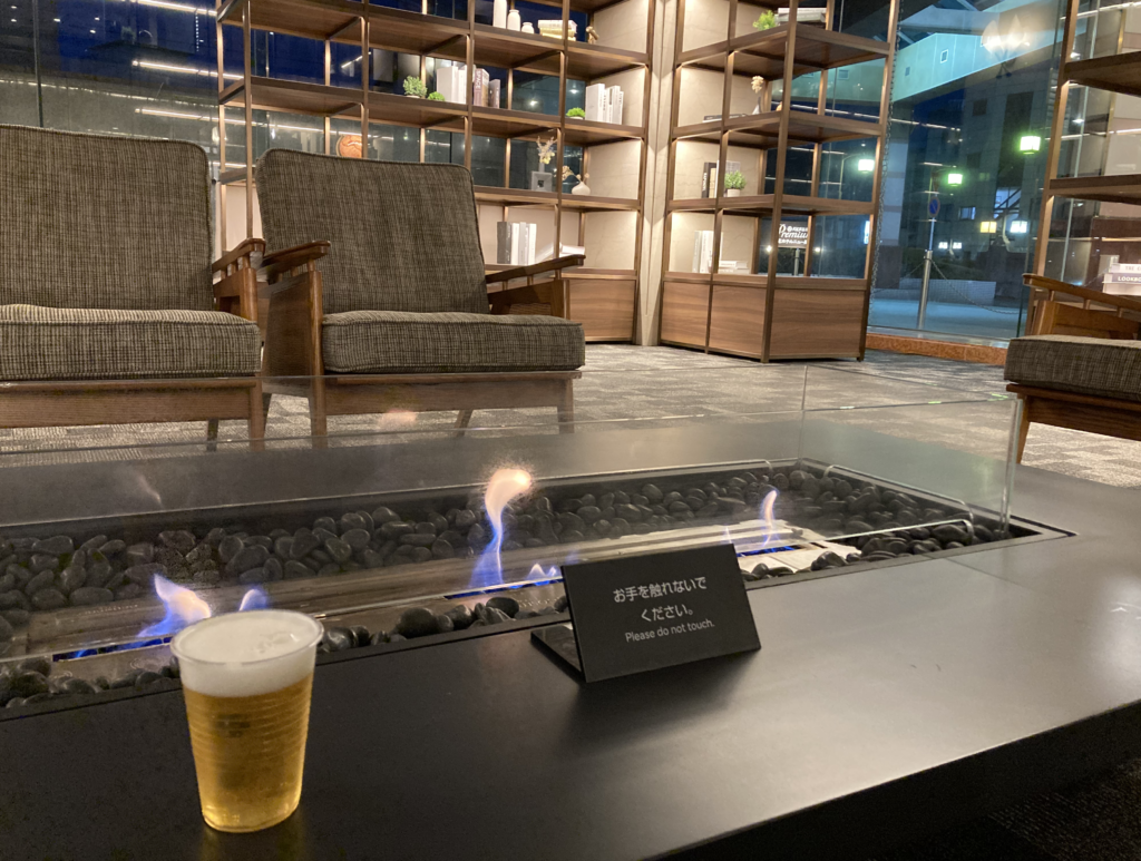 日が落ちて、再びラウンジへ