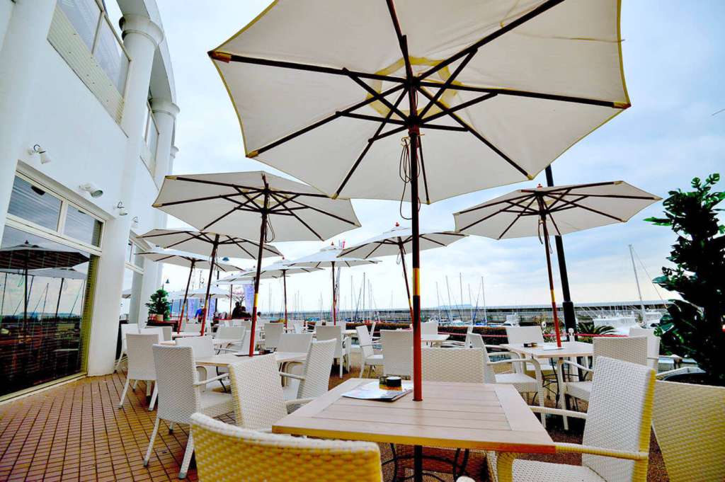 ヨットが並び、海が広がり、空が大きい。観光施設の中にありながら、とても静かで落ち着いた空間。