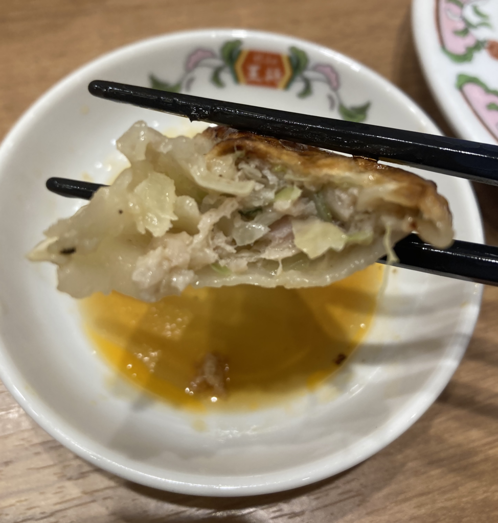 餡は肉と野菜のバランスが良く、噛むたびに肉汁と野菜の甘みが同時に立ち上がるタイプです。