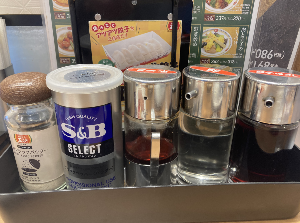 餃子には定番の「醤油+ラー油」のほかにも、いくつかの味変がありますが、この日は敢えて、