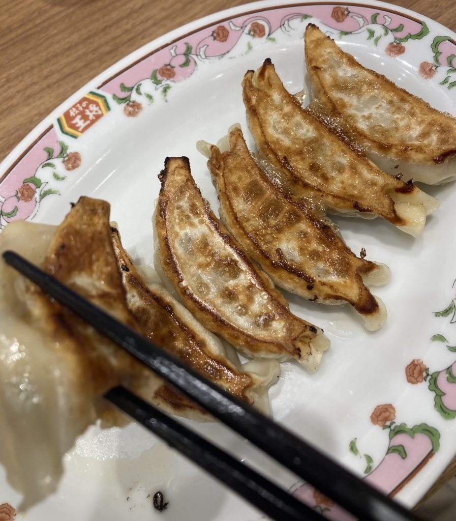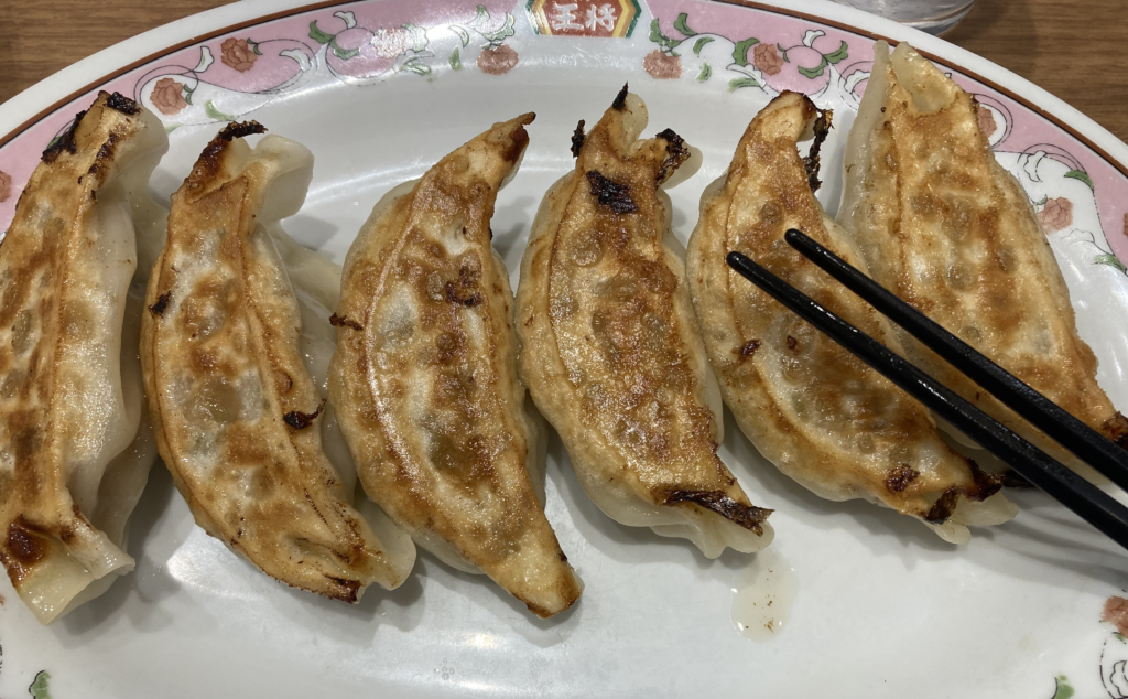 餃子の王将の餃子は、見た目以上に食べ応えがあるサイズ。